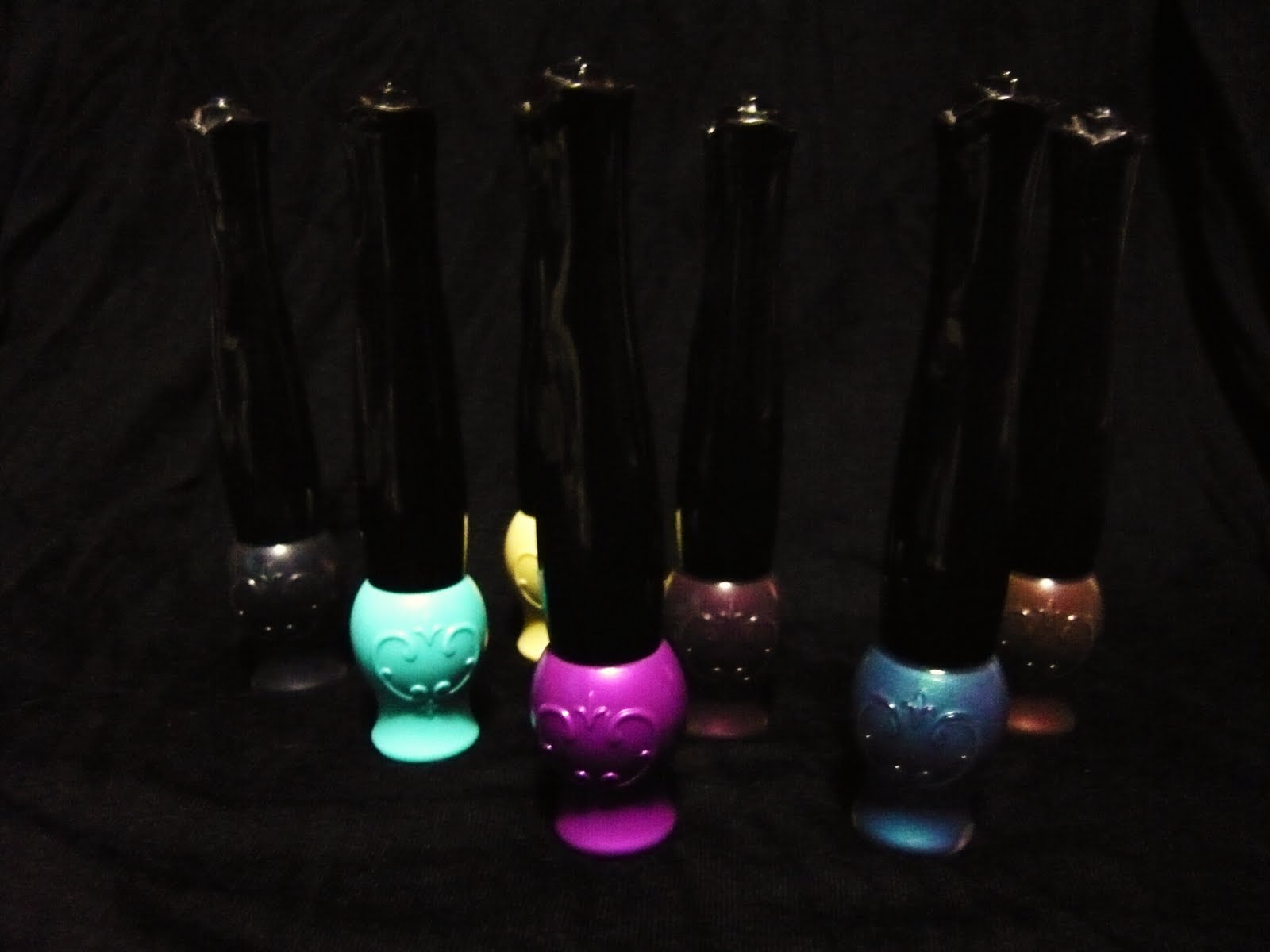 Coloured eyeliners :) Quite awhile, Anna Sui came up with this range of coloured liquid liners. The brush is perfect and the colours are really vibrant and have a touch of shimmer in them. Since summer is approaching, i thought it would be the perfect time to bring out the coloured liners! So for summer, why not try something different. A coloured liner would really brighten up your eyes and give a nice fresh look for day wear :) The lighter colours look great over a black or dark blue eyeliner.